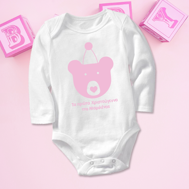 Μακρυμάνικο Φορμάκι με Αρκουδάκι τα Πρώτα Χριστούγεννα με Όνομα, Μοναδικό Χριστουγεννιάτικο Δώρο Προσωποποιημένο κορμάκι, ζιπουνάκι, για αγοράκι ή κοριτσάκι, που θα ζήσει σε λίγο τα πρώτα του Χριστούγεννα. Το δώρο που θα ξεχωρίσει από όλα τα άλλα και θα στολίζει την παιδική ντουλάπα αν όχι για πάντα, σίγουρα για πολλά χρόνια είναι το Δώρο Μακρυμάνικο Φορμάκι με Αρκουδάκι τα Πρώτα Χριστούγεννα με Όνομα, για να ευχηθείτε στο αγοράκι ή κοριτσάκι. Ψάχνετε δώρο Χριστουγέννων για το αγοράκι ή κοριτσάκι που θα ζήσει τα πρώτα του Χριστούγεννα, στο φιλικό ή οικογενειακό σας περιβάλλον; Το μοναδικό Αναμνηστικό Δώρο Μακρυμάνικο Φορμάκι με Αρκουδάκι τα Πρώτα Χριστούγεννα με Όνομα για αγοράκι, καριτσάκι είναι το προσωποποιημένο δώρο που φτιάχνεται χειροποίητα αποκλειστικά για κάθε παιδι, είναι το δώρο έξω από τα συνηθισμένα που μπορεί να προσφερθει. Κορμάκι, ζιπουνάκι, Φορμάκι τα Πρώτα Χριστούγεννα με Όνομα, είναι ένα δώρο που θα μείνει για πάντα στη ντουλάπα του παιδιού και θα θυμίζει πάντα αυτή τη μοναδική και ξεχωριστή στιγμή! Φορμάκι τα Πρώτα Χριστούγεννα με Όνομα, είναι ιδανικό δώρο για κοριτσάκια 6 μηνών ή αγοράκια ηλικίας έως 12 μηνών. Ένα διαφορετικό και οικονομικό δωράκι κορμάκι, ζιπουνάκι, για κοριτσάκι ή αγοράκι 3 μηνών, 6 μηνών, 9μηνών, 12μηνών που ξεχωρίζει. Μπορείτε να το συνδυάσετε με ένα γυάλινο προσωποποιημένο ρολόι τοίχου για το παιδικό δωμάτιο. Στο familyandfriends.gr θα βρείτε μοναδικά προσωποποιημένα δώρα γενεθλιων, γενεθλια και δώρα γιορτών, επετειο, επετειους, νεογεννητα, προσωποποιημένα για αγόρια και κορίτσια, ανδρες, μαμα, μπαμπα, παππου, θειο, θεια, νονα, νονο και γυναίκες και καθε φιλο η συγγενη. Ποιότητα 220 RIB 1X1 100% Ringspun βαμβάκι πενιέ ΣΤΥΛ — ΚΛΑΣΣΙΚΟ Τελειώματα με φάσα. Κοντά μανίκια με χρώμα. Κλείσιμο με τρουκ στον κάβαλο.