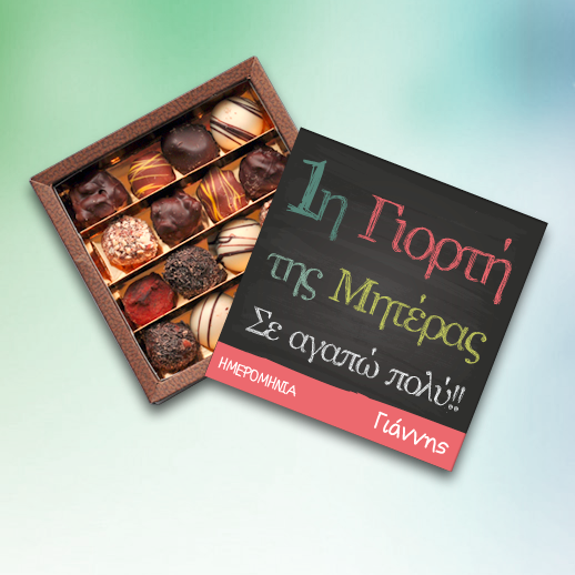 Το μοναδικό Προσωποποιημένο Κουτί Σοκολατάκια 1η Γιορτή της Μητέρας είναι το προσωποποιημένο δώρο που φτιάχνεται χειροποίητα αποκλειστικά για την δική σας Μαμά, είναι το δώρο έξω από τα συνηθισμένα που μπορεί να προσφέρει ο ο γιός, η κόρη ή ο Σύζυγος στην Μαμά.