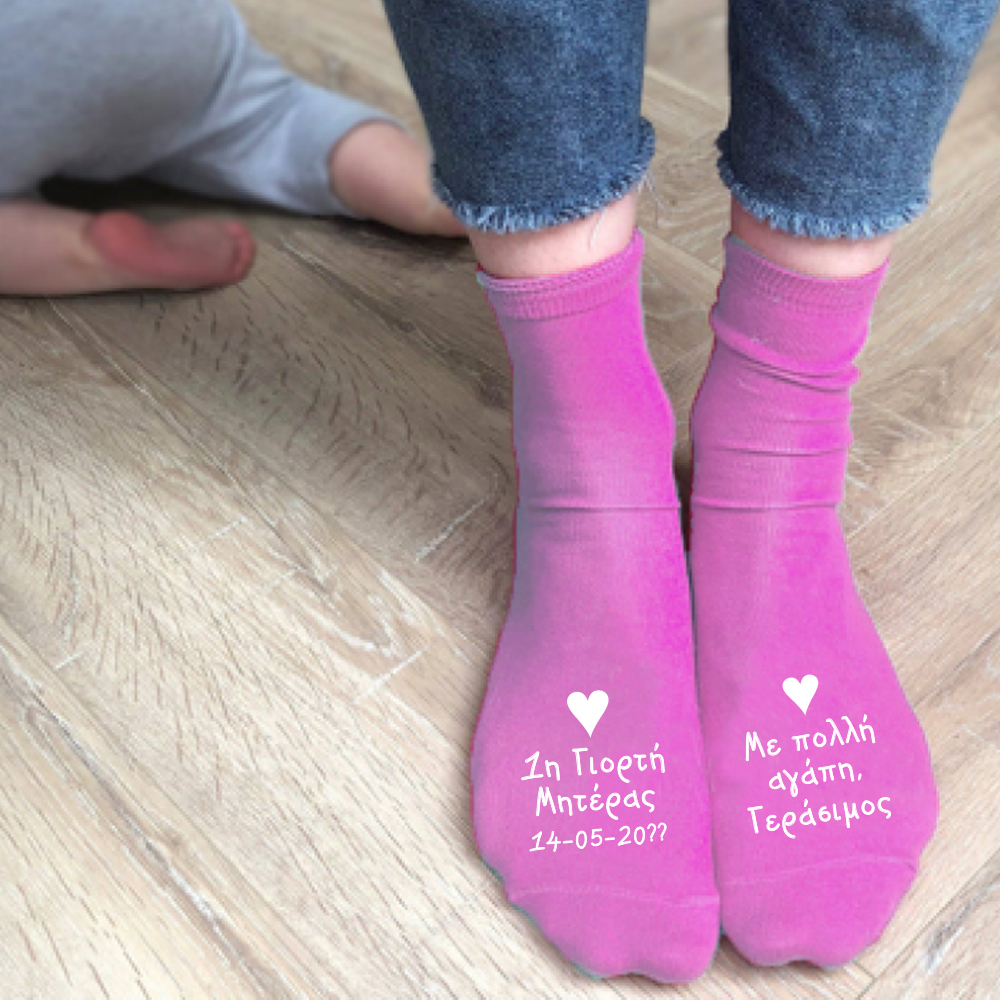 Μοναδικό προσωποποιημένο δώρο για την Γιορτή της μητέρας, mothers day, στην αγαπημένη σας Μαμά. Δώρο Κάλτσες με Μήνυμα, Όνομα προσωποποιημένο που θα μείνει αναμνηστικό για πολλά χρόνια και θα θυμίζει στην Μαμά ή την Γιαγιά αυτή την μοναδική στιγμή.