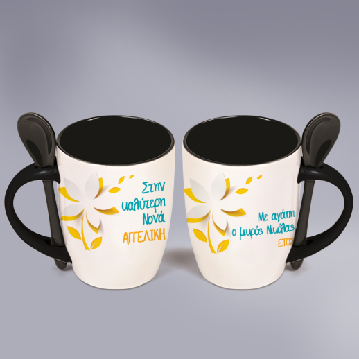 Δώρο για την καλύτερη Νονά, Κούπα με Όνομα και Κουταλάκι