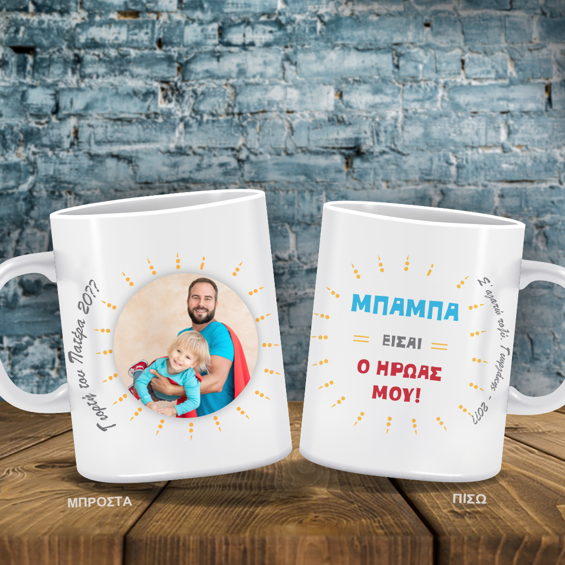 Προσωποποιημένη Κούπα με Φωτογραφία, Ονόματα, Ευχές για Άνδρες, ένα ξεχωριστό δώρο για την Γιορτή του Πατέρα, 1st father's day, που είναι κάθε Ιούνιο την 3η Κυριακή! Μπορείτε να γράψετε και την ημερομηνία που θα δώσετε το δώρο για να θυμάστε για πάντα την στιγμή που ζήσατε με τον Μπαμπά.