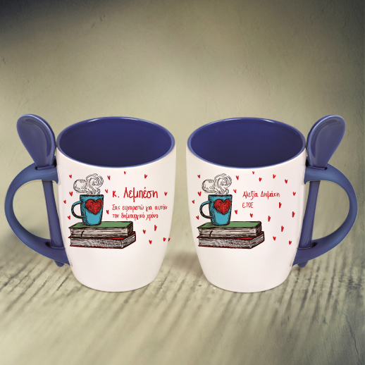 Δώρο Κούπα με Κουταλάκι για Δασκάλα, Προσωποποιημένη με Καρδιές