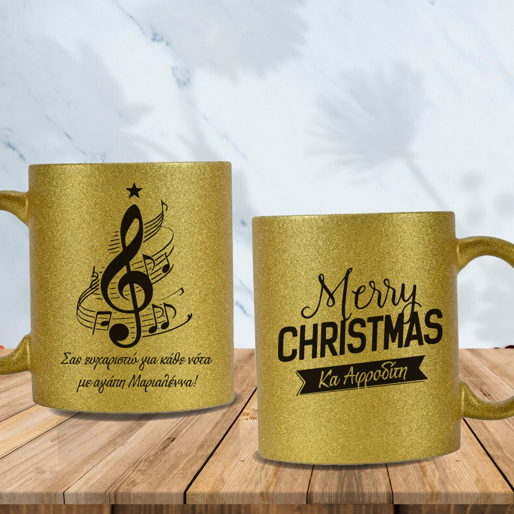 Ανακαλύψτε ένα ξεχωριστό αναμνηστικό Προσωποποιημένο δώρο για την δασκάλα μουσικής του παιδιού σας, Κούπα Γκλίτερ Χρυσή, με κλειδί του σολ, Ονόματα, Μήνυμα !