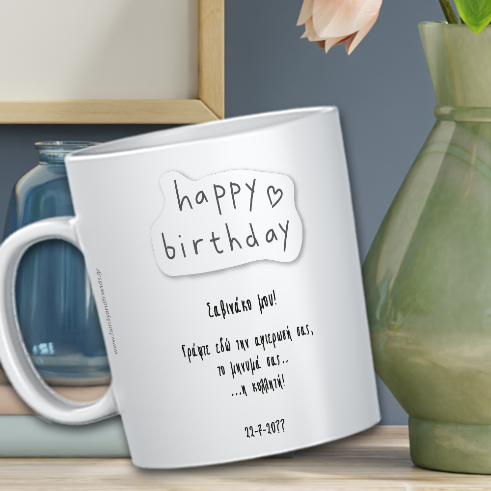 Happy Birthday & Ευχές σε κούπα με Ονόματα, ένα διαφορετικό δώρο γενεθλίων για φίλες, που θα εντυπωσιάσει την ώρα που θα το προσφέρετε.