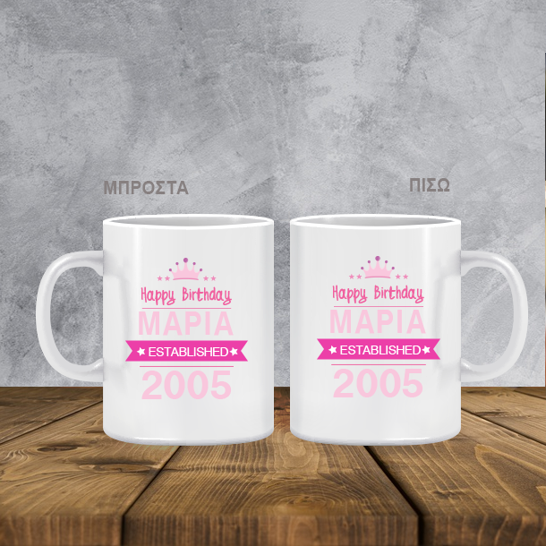 Happy Birthday, με έτος γέννησης, Κούπα με Ευχές, Όνομα, δώρο για γενέθλια, 10, 15, 20 χρονια!.