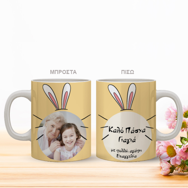 Κούπα με Αυτιά Λαγού, Δώρο με Φωτογραφία, Ονόματα, Ευχές