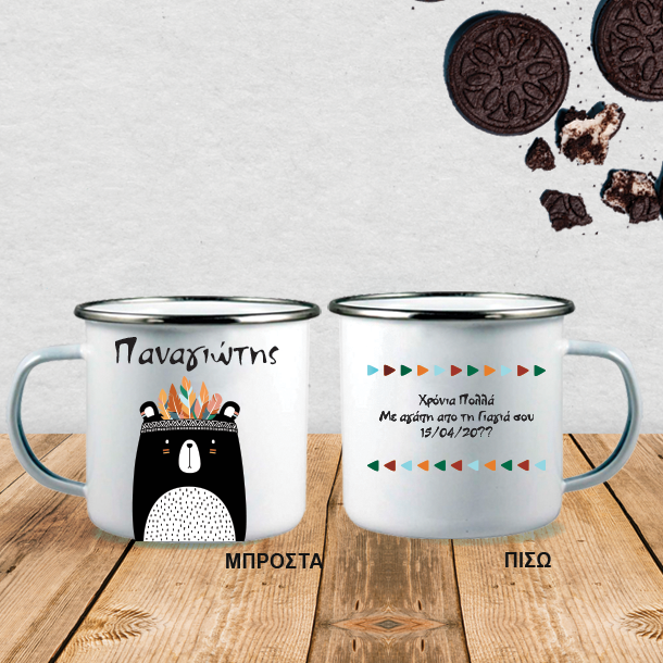 Κάντε και εσείς ένα μοναδικό προσωποποιημένο Δώρο Γενεθλίων ή δώρο ονομαστικής γιορτής σε κάθε φίλο που γιορτάζει ή έχει γενέθλια, φτιάχνοντας με το μήνυμα που θέλετε μια Προσωποποιημένη Κούπα με αρκουδάκι Μεταλλική Enamel με ασημί χείλος, Ευχές, μοναδικό δωρο γενεθλίων για την αδελφή σας, αδελφό σας.