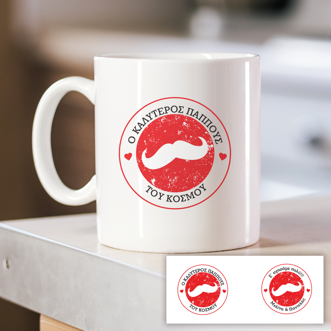 Κούπα για άνδρες με εκτύπωση Ονόματα, Ευχές, Μήνυμα, Προσωποποιημένο δώρο για στον Παππού, ξεχωριστό και πρωτότυπο για τα Γενέθλια του πολυαγαπημένου σας Παππού. Θα μείνει για πάντα στην κουζίνα του για να πίνει τον καφέ του δημιουργώντας κάθε φορά μοναδικές αναμνήσεις! Συνδυάστε την Προσωποποιημένη Κούπα, με ένα προσωποποιημένο δερμάτινο πορτοφόλι με χάραξη λέιζερ ονόματος & μηνύματος !