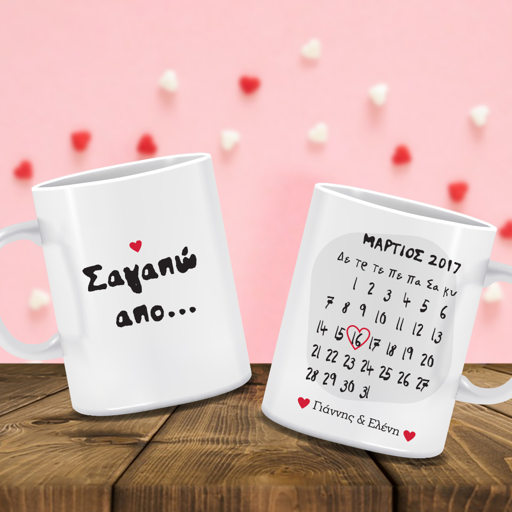 Μοναδική Πρωτότυπη Προσωποποιημένη Κούπα με μήνα γνωριμίας. Ονόματα, Μήνυμα για ζευγάρια, είναι το Δώρο για Ερωτευμένους που ξεχωρίζει, για την γιορτή του Αγίου Βαλεντίνου. Εκφράστε την αγάπη σας με ένα ξεχωριστό τρόπο με το Προσωποποιημένο Δώρο Κούπα με μήνα γνωριμίας. Ονόματα, Μήνυμα για ζευγάρια, για την επέτειο 1 ετους, 2, 3, 4, 5 ετων σχέσης κάθε ζευγαριου.