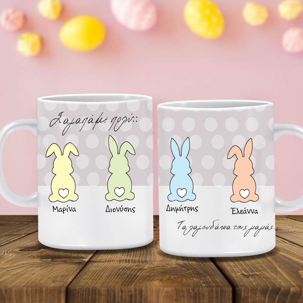 Επιλέξτε ένα τα προσωποποιημένα δώρα με Ονόματα, Ευχές, Φωτογραφίες στο familyandfriends.gr και θα εντυπωσιάσετε την Γιαγια όταν το προσφέρετε. Κούπα για τη Γιαγιά, με Ονόματα Λαγουδάκια, Μήνυμα, για ευχηθείτε Χρόνια Πολλά στην αγαπημένη σας γιαγιά!