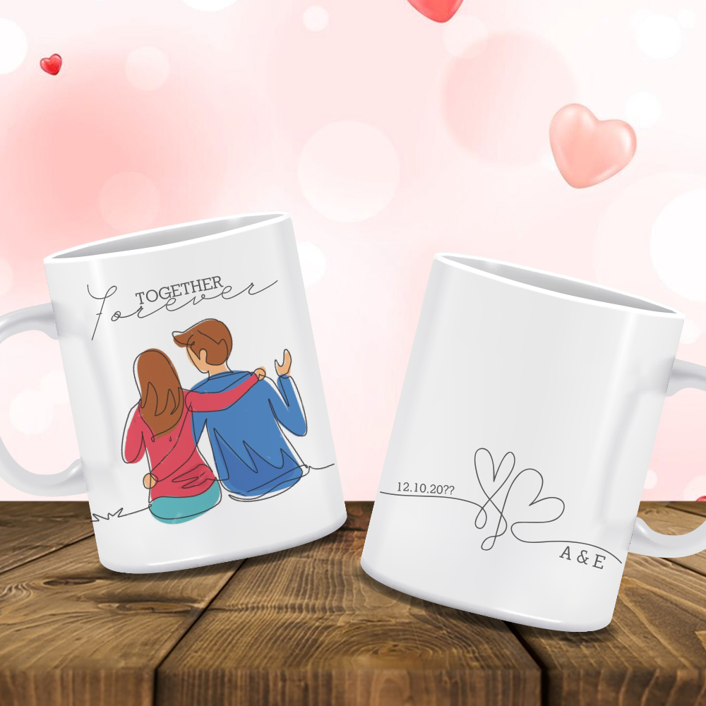 Προσωποποιημένο δώρο Κούπα με σκίτσο ζευγάρι με Ονόματα, Forever Together, για την ημέρα των ερωτευμένων, Αγίου Βαλεντίνου, που θα δημιουργεί μοναδικές αναμνήσεις όταν θα πίνει τον καφέ του το αγόρι σας ή το κορίτσι σας.