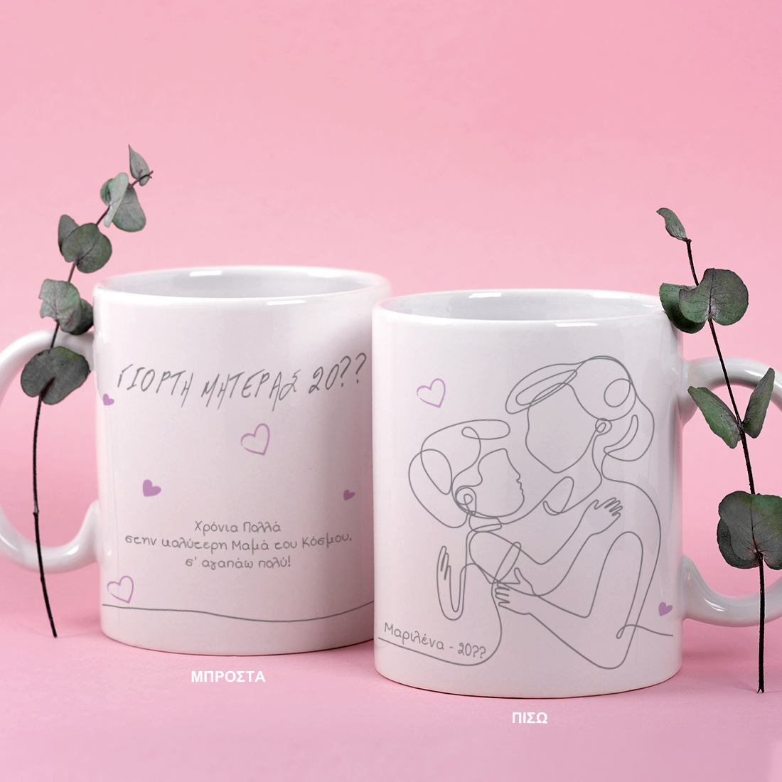 Πείτε Χρόνια Πολλά στην αγαπημένη σας Μαμά για την Γιορτή της Μητέρας, με ένα Προσωποποιημένο δωρο πρωτότυπο και οικονομικό Κούπα με εκτύπωση Ονόματα, Μήνυμα με γραμμικό σκίτσο.