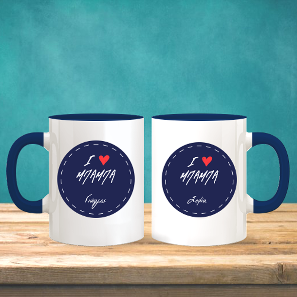 Κάντε και εσείς ένα μοναδικό προσωποποιημένο Δώρο γενεθλίων ή δώρο ονομαστικής γιορτής, Κούπα με μπλε λαβή Μήνυμα, Ονόματα, στην Μαμά σας.