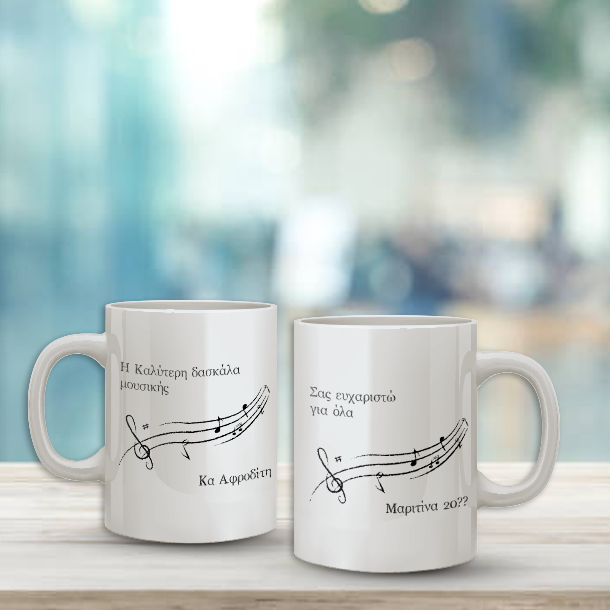 Κούπα με Πεντάγραμμο, Ονόματα, Μήνυμα, ανακαλύψτε ένα μοναδικό αναμνηστικό δώρο για την Δασκάλα ή τον Δάσκαλο μουσικής του παιδιού σας.