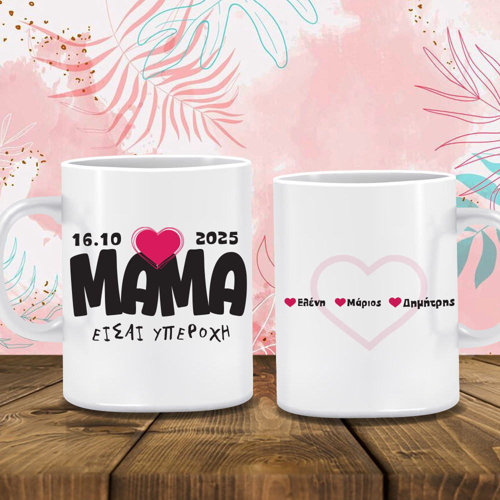 Πρωτότυπη Προσωποποιημένη Κούπα για τη Μαμά με εκτύπωση Ονόματα, Μήνυμα, δώρο για Μαμάδες, σε πολυτελές κουτί για να πείτε χρόνια Πολλά στην αγαπημένη σας Μαμά για την γιορτή της Μητέρας, Mother's Day που είναι κάθε Μαιο την 2η κυριακή.