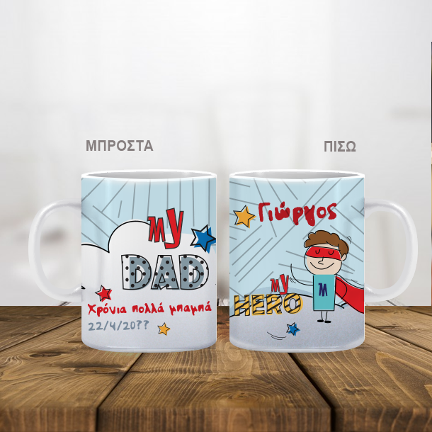 Κούπα Super Dad Προσωποποιημένη με Όνομα, Ευχές και Έτος είναι ένα ξεχωριστό και μοναδικό δώρο με αφορμή την Γιορτή του Πατέρα!