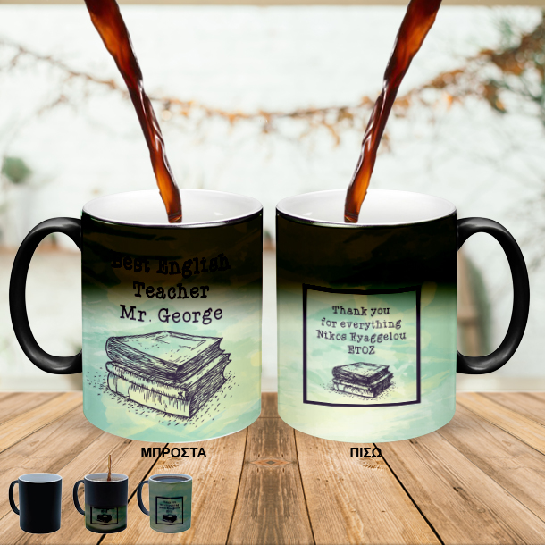 Ένα μοναδικό αναμνηστικό δώρο για την Δασκάλα ή τον Δάσκαλο αγγλικων του παιδιού σας, για Καλό Καλοκαίρι Μαγική Κούπα για Δασκάλους με Αφιέρωση, Όνομα για Δασκάλα Προσωποποιημένη, Έτος με αφορμή το τέλος της σχολικής χρονιάς ή κάθε άλλη αφορμή. Στο familyandfriends.gr θα βρείτε μοναδικά προσωποποιημένα δώρα γενεθλίων και δώρα γιορτών προσωποποιημένα για αγόρια και κορίτσια, ανδρες και γυναίκες Η Δασκαλα είναι ένα ξεχωριστό πρόσωπο στην καθημερινότητα και την ζωή του καθε παιδιού που πηγαίνει σε οποιαδήποτε βαθμίδα της σχολικής εκπαίδευσης έτσι το Προσωποποιημένο δώρο, Μαγική Κούπα για Δασκάλους με Αφιέρωση, Όνομα για Δασκάλα για Δάσκαλες, δασκαλους, Όνομα και ημερομηνία, είναι το δώρο που θα την ενθουσιάσει, και θα το κρατήσει σαν αναμνηστικό της σχολικής χρονιάς για πάντα. Το Προσωποποιημένo Δώρο για Δάσκαλο, Μαγική Κούπα για Δασκάλους με Αφιέρωση, Όνομα για Δασκάλες, για Δάσκαλο,α, αγγλικων και κάθε άλλης ξένης γλώσας. μπορεί να είναι το δώρο με αφορμή τα γενέθλια ή την γιορτή της δασκάλας ή του δάσκαλου. Μαγική Κούπα, με Ευχές, Όνομα θα ξεχωρίσει από όλα τα άλλα δώρα αμέσως, γιατί είναι προσωπικό και φτιάχνεται αποκλειστικά για την δική σας δασκάλα ή δασκαλο. Είναι επίσης ένα πρωτότυπο αναμνηστικό δωράκι για κάθε καθηγητή σας που σας βοήθησε να εξελιχθείται και να μάθετε πολλά νέα πράγματα την χρονια που περασε. Στα Προσωποποιημένα δώρα με ή χωρίς Φωτογραφία, για την δασκάλα ή τον δασκάλο μπορείτε να αλλάξετε τα κείμενα όπως εσείς θέλετε ανεξάρτητα από την δική μας πρόταση. Το Προσωποποιημένo Δώρο για Δασκάλες, Μαγική Κούπα για Δασκάλους με Αφιέρωση, για Δασκάλα, θα κρατηθεί σαν αναμνηστικό για πάντα από κάθε δάσκαλο ή δασκάλα. Για να κάνετε το δώρο Προσωποποιημένη Μαγική Κούπα με Αφιέρωση, Όνομα για Δασκάλα, ακόμα πιο προσωπικό μπορείτε να γράψετε πάνω στην κούπα την αφιέρωσή σας και την ημερομηνία που θα δώσετε το δώρο. Έτσι η Προσωποποιημένη Μαγική Κούπα για Δασκάλους με Αφιέρωση, Όνομα, θα είναι πραγματικά ένα ξεχωριστό και πρωτότυπο αναμνηστικό δώρο για το Δάσκαλο, με αφορμή το τέλος της σχολικής χρονιάς που θα  μείνει για πάντα στο γραφείο του  και θα του δημιουργεί κάθε φορά μοναδικές αναμνήσεις! Συνδυάστε την Προσωποποιημένη Μαγική Κούπα, με Ευχές, Όνομα για Δασκάλα,  με ένα προσωποποιημένο βαζάκι με καραμέλες με όνομα! ΠΕΡΙΓΡΑΦΗ ΠΡΟΙΟΝΤΟΣ Μαγική Κούπα που εμφανίζει το μήνυμα μόλις βάλετε μέσα ζεστό ρόφημα 4 χρωμη εκτύπωση Διαστάσεις: 8,5cm διάμετρος, 330ml