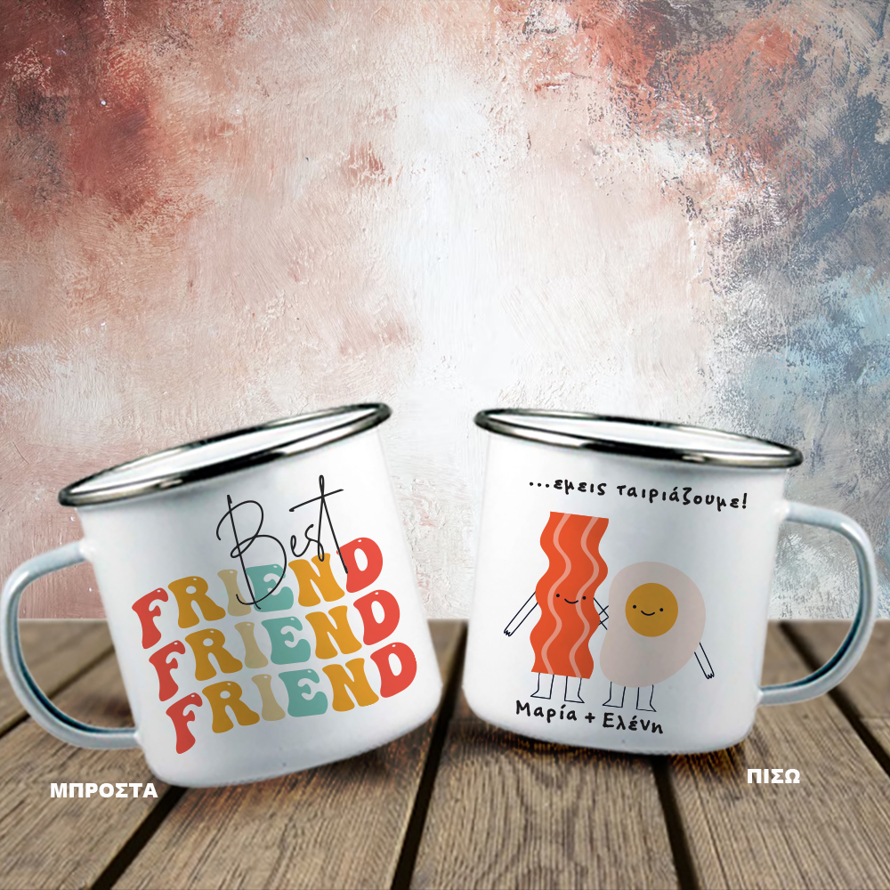 Προσωποποιημένη Κούπα μεταλλική εμείς ταιριάζουμε, πατάτα, αβγό με Ονόματα, δώρο για να πείτε χρόνια πολλά στη κολλητή σας. Ένα προσωποποιημένο δώρο που θα ξεχωρίσει από όλα τα άλλα και θα απολαμβάνει τον καφέ της η φίλη σας για πολλά χρόνια.