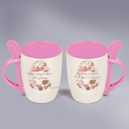 Ένα μοναδικό, προσωποποιημένο Δώρο για τη Γιαγιά, Πασχαλινό Δώρο Κούπα με Κουταλάκι για την Γιαγιά με Ευχές, Όνομα, φτιάχνεται κάθε φορά αποκλειστικά μόνο για τη δικιά σας γιαγιά γιατι έχει τις ευχες σας έτος και το δικό σας όνομα!