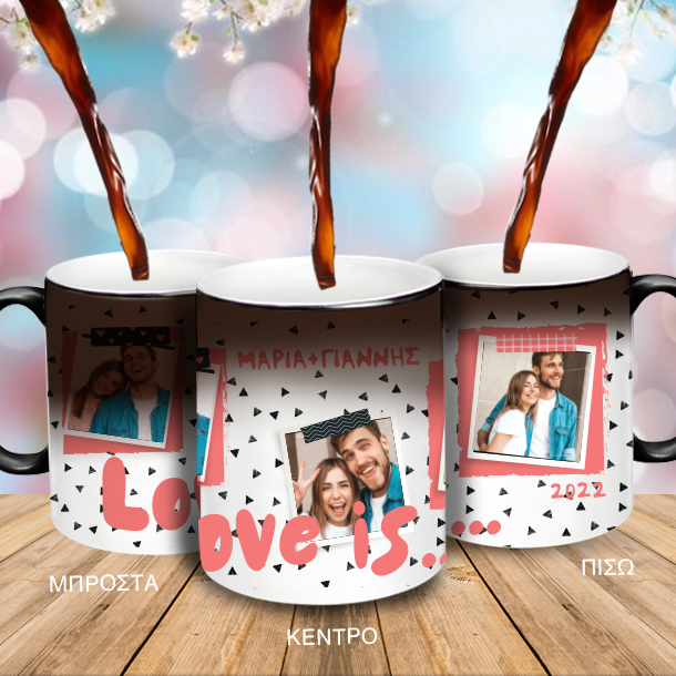 Κούπα Μαγική με εκτύπωση 3 Φωτογραφίες, για ζευγάρια, Ονόματα, για να ευχηθείτε χρόνια πολλά στον φίλο ή τον φίλο σας με αφορμή τα γενέθλια τους ή την γιορτή του αγιου βαλεντινου, ή όποια επέτειο γιορτάζετε.