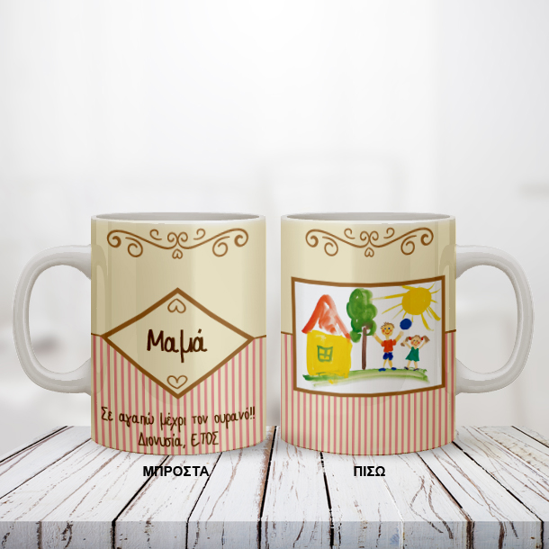 Ένα Μοναδικό Προσωποποιημένο Δώρο Προσωποποιημένη Κούπα, με ζωγραφιά του παιδιού, Ευχές, βάζοντας Φωτογραφία, Μήνυμα και ημερομηνία για την Γιορτή της Μητέρας.