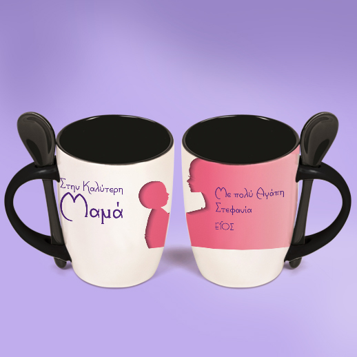 Ένα ξεχωριστό και πρωτότυπο προσωποποιημένο Δώρο για την Γιορτή της Μητέρας, Προσωποποιημενο Δώρο με σκίτσο, Όνοματα Κούπα με Κουταλάκι, ημερομηνία και αφιέρωση για την αγαπημένη σας Μαμά, που θα την εντυπωσιάσει και θα δείξετε ότι την θυμηθήκατε και πόσο πολύ την αγαπάτε!