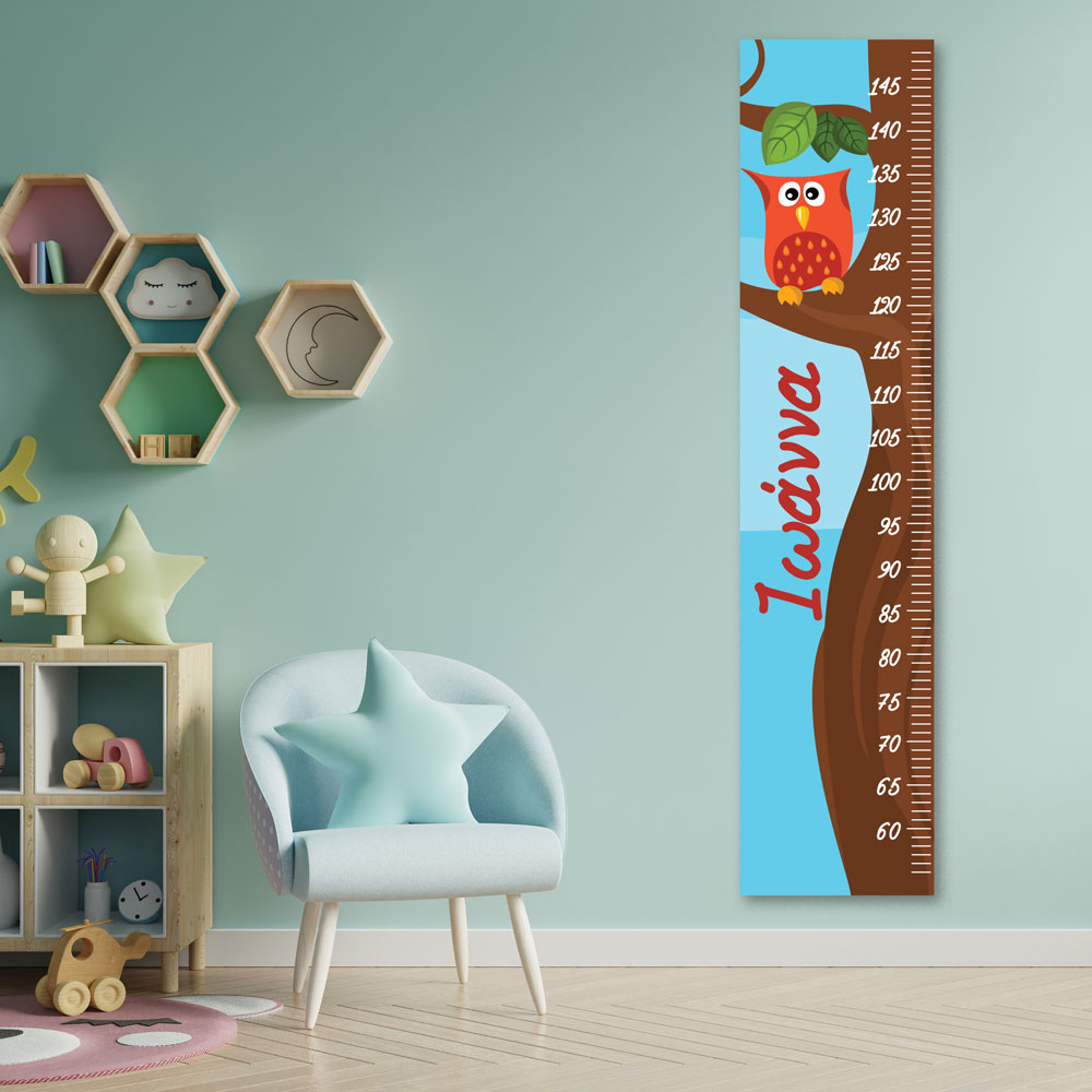 Μετρητής ύψους με κουκουβάγια σε κλαδί, με όνομα
