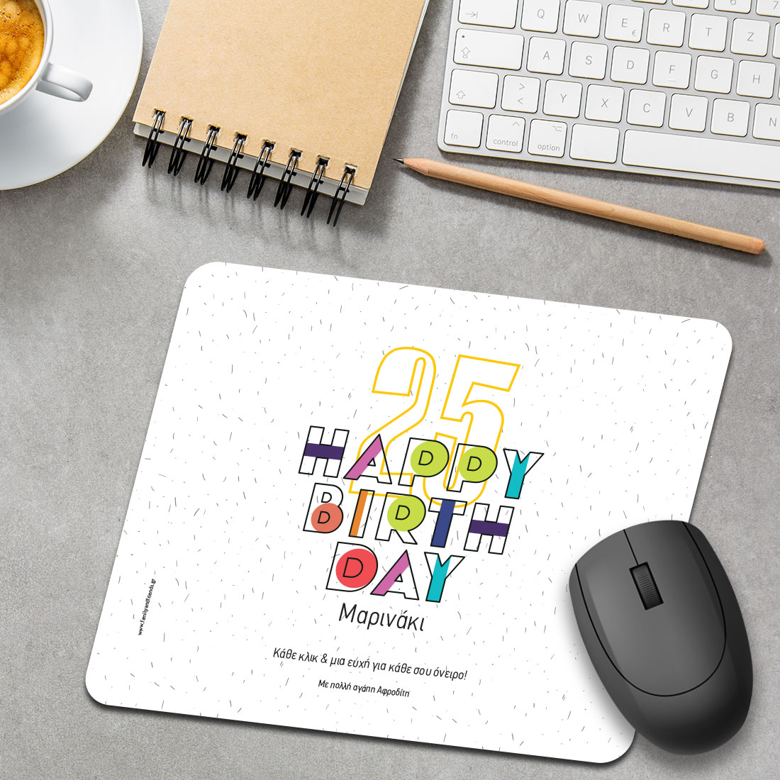 Το Προσωποποιημένο Δώρο Γενεθλίων, Mouse Pad Happy Birthday με Όνομα, Ηλικία, Μήνυμα είναι ένα μοναδικό αναμνηστικό δώρο για το φίλο ή τη φίλη σας που έχει γενέθλια. Ένα Δώρο Γενεθλίων, για τον Μπαμπά, τη Μαμά, το Θείο, τη Θεία και τη νονά  με αφορμή τα γενέθλια τους. Στο familyandfriends.gr θα βρείτε μοναδικά προσωποποιημένα δώρα γενεθλίων και δώρα γιορτών προσωποποιημένα για αγόρια και κορίτσια, άνδρες και γυναίκες