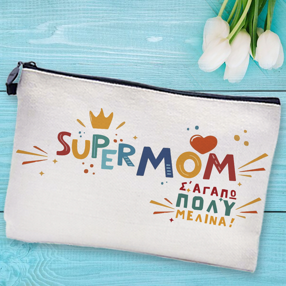 Ξεχωριστό Δώρο για τη Mother's Day που θα εντυπωσιάσει τη Μαμά, Super Mom Τσαντάκι καλλυντικών, Νεσεσέρ με Όνομα!