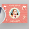 ΣΗΜΕΙΩΣΗ: Τα προσωποποιημένα προϊόντα φτιάχνονται κατόπιν παραγγελίας, με τα κείμενα & τις φωτογραφίες που βάζετε στην παραγγελία σας για αυτό δεν επιστρέφονται εκτός και εάν υπάρχει λάθος στην παραγωγή τους.