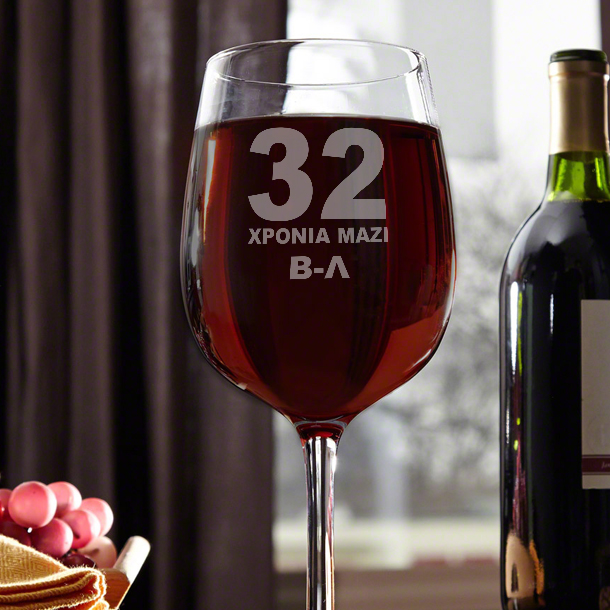 Το Πρωτότυπομε ειδική etching τεχνική, Προσωποποιημένο Για Επέτειο Γυάλινο Ποτήρι Κρασιού με Χρόνια και Αρχικά, φτιάχνεται κάθε φορά αποκλειστικά μόνο για τον δικό σας, φίλο ή φίλη και μένει για πάντα αναμνηστικό από την 1η επετειο, 2η επετειο, 5η επέτειο, 10η επετειο, 15η επετειο.