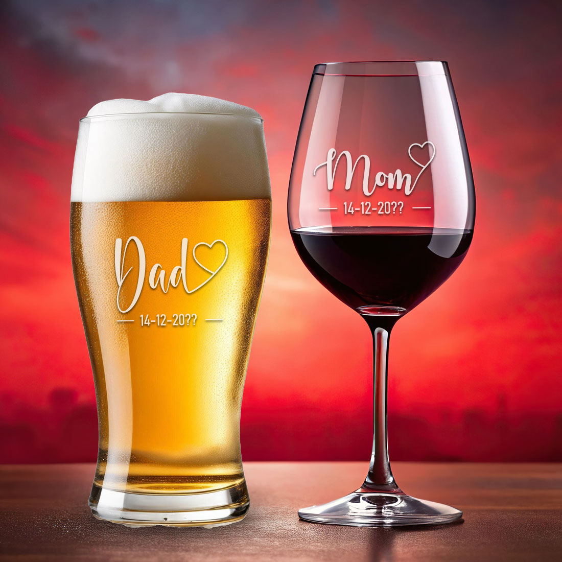 Φτιάξτε ένα μοναδικό Γιορτινό Δώρο για την Μαμά & τον Μπαμπά, Προσωποποιημένο με χαραξη Σετ Ποτήρια Κρασιού & Μπύρας με Ονόματα για Μαμά, Μπαμπά με Ημερομηνία, ξεχωριστό δώρο για τις ημέρες των γιορτών θα βρεθείτε για να γιορτάσετε μαζί.