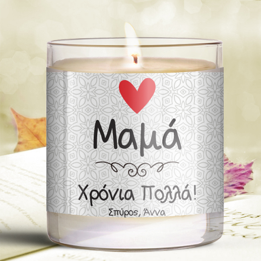 Ενα μοναδικό δώρο που θα είναι η έκπληξη της βραδιάς, Κερί σε Ποτήρι με Καρδιά Προσωποποιημένο Δώρο για την Μαμά για να εκφράσετε την αγάπη σας με ένα ξεχωριστό τρόπο.