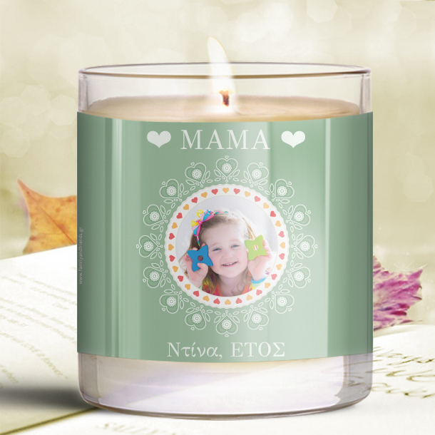 Το ξεχωριστό δώρο Προσωποποιημένο Κερί με Φωτογραφία, μπορεί να δοθεί σαν δώρο με κάθε αφορμή από από την κόρη ή γιό στην αγαπημένη τους μαμά.