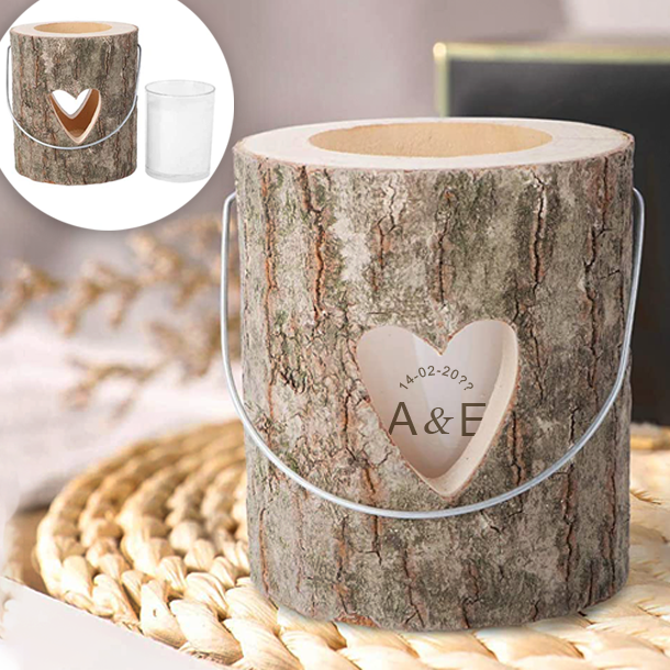 Ξύλινη θήκη, κηροπήγιο με καρδιές