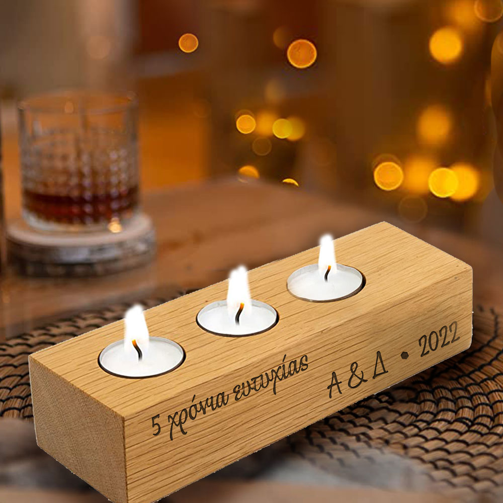 Ξύλινο Κηροπήγιο με 3 θέσεις ρεσώ με χάραξη Ονόματα, Μήνυμα, Ένα μοναδικό Προσωποποιημένο δώρο, για την αγαπημένη σας Μαμά που γιορτάζει την γιορτή της.