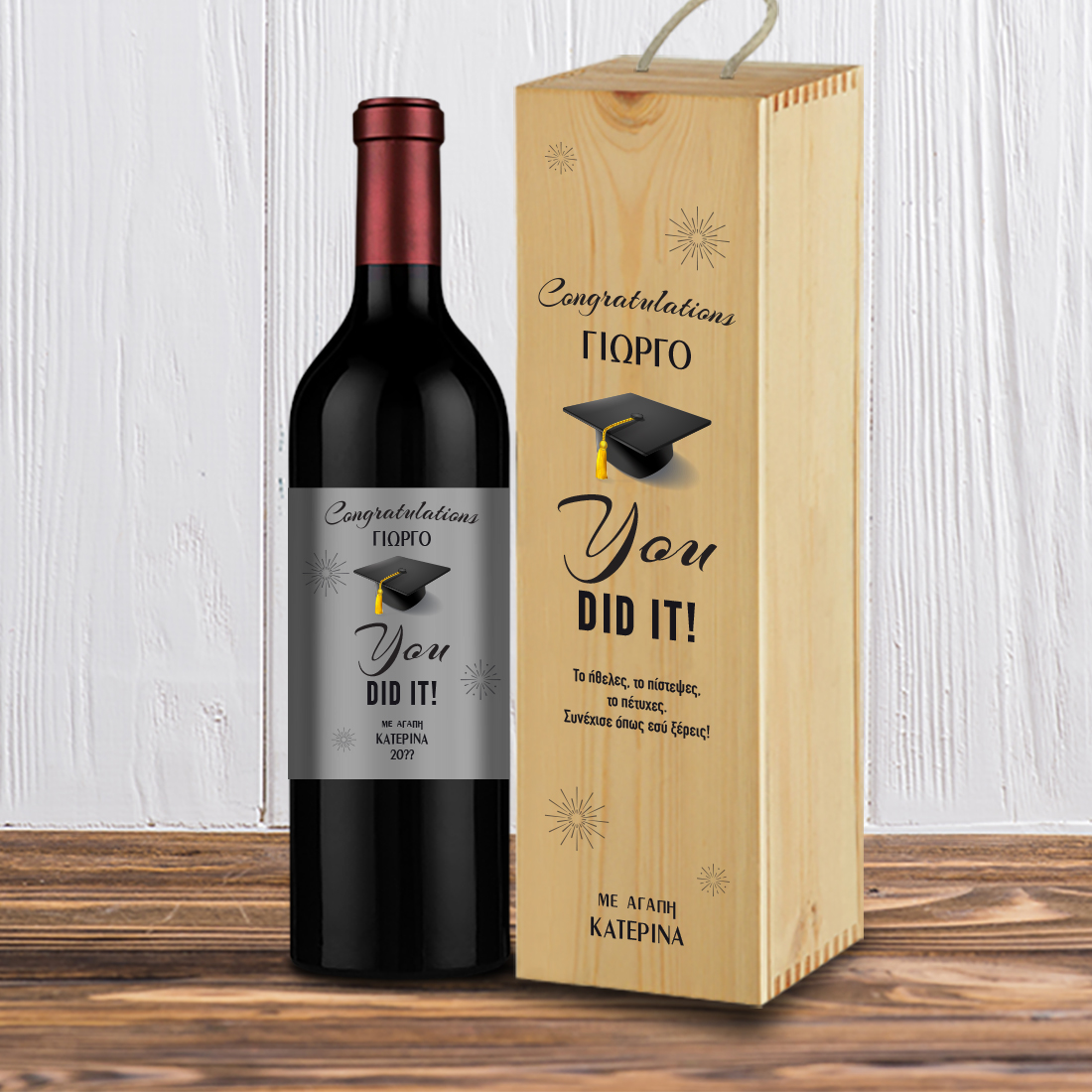 Επιλέξτε ένα Μοναδικό Προσωποποιημένο Δώρο αποφοίτησης από πανεπιστημιο, ορκομωσία. Συγχαρητήρια Για αποφοίτηση Ετικέτες & Ξύλινο Κουτί με Κρασί με Ευχές, Ονόματα, στην πιο ξεχωριστή μέρα για κάθε Φοιτητή του ολοκληρώνει ένα στάδιο των σπουδών του, που θα εντυπωσιάσει.
