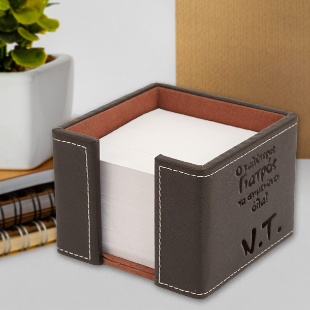 Προσωποποιημένο Δερμάτινο για Γραφείο Θήκη για Χαρτάκια Δερμάτινη Επιτραπέζια με Ονόματα, χαραγμένο με laser, πρωτότυπο δώρο για τα γενέθλια ή την γιορτή του Μπαμπά, που θα ξεχωρίσει από όλα τα άλλα δώρα αμέσως, γιατί είναι προσωπικό και ξεχωριστό.