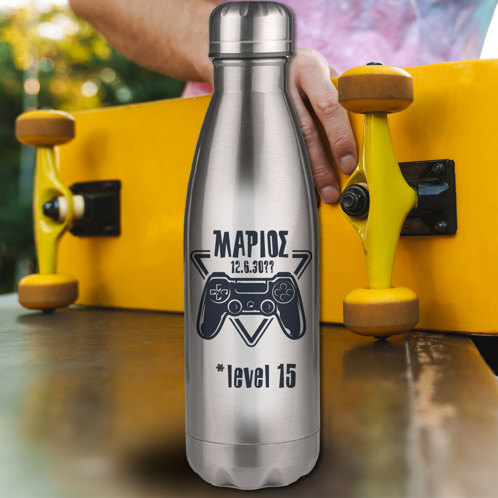Παγούρι Ανοξείδωτο θερμός με Όνομα, game level, stainless steel, 750 ml, Προσωποποιημένο δώρο γενεθλίων για τον αδελφό σας, την αδελφή σας ακόμα και για τον Μπαμπά που γιορτάζουν. Παγούρι θερμός με Όνομα, game level, stainless steel, 750 ml για Νερό για Αγόρια στο δημοτικό, το γυμνάσιο ή το λύκειο για να έχουν μαζί τους το δικό τους νερό και να απολαμβάνουν όταν το θέλουν.