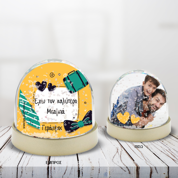Το Δώρο Χιονόμπαλα για Άνδρες Προσωποποιημένη με φωτογραφία, στον καλύτερο μπαμπα, για την γιορτή του πατερα με ονόματα και ημερομηνία, είναι ένα πρωτότυπο και οικονομικό δώρο που μπορείτε να κάνετε με κάθε αφορμή στην Μαμά, και την γιαγιά, που θα εντυπωσιάσει και θα δείξετε ότι τους θυμηθήκατε και πόσο πολύ τους αγαπάτε!
