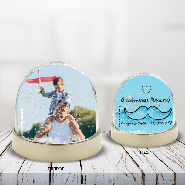 Πρωτότυπη Προσωποποιημένη Με μουστάκι Χιονόμπαλα με Ευχές, Φωτογραφία, ονόματα και ημερομηνία είναι ενα πρωτοτυπο δωρο για τον μπαμπα σας με κάθε αφορμή. Με μουστάκι Χιονόμπαλα με Ευχές, Φωτογραφία, ένα Μοναδικό Προσωποποιημένο Δώρο για την γιορτή του Πατέρα, για να πείτε χρόνια πολλά στον αγαπημένο σας μπαμπά που γιορτάζει. Η Πρωτότυπη χιονόμπαλα που αιωρείται χιόνι μέσα στο νερό όταν την κουνάτε. Το Δώρο Με μουστάκι Χιονόμπαλα με Ευχές, Φωτογραφία, στον καλύτερο μπαμπα, για την γιορτή του πατερα με ονόματα και ημερομηνία, είναι ένα πρωτότυπο και οικονομικό δώρο που μπορείτε να κάνετε με κάθε αφορμή στην Μαμά, και την γιαγιά, που θα εντυπωσιάσει και θα δείξετε ότι τους θυμηθήκατε και πόσο πολύ τους αγαπάτε! Κάντε και εσείς ένα μοναδικό προσωποποιημένο Δώρο, Με μουστάκι Χιονόμπαλα με Ευχές, Φωτογραφία στον Μπαμπά, τον Παππού για δωρο γενεθλιων ή δωρο ονομαστικής γορτής που θα ξεχωρίσει και θα κρατηθει ανμνηστικο για μια ζωη. Με μουστάκι Χιονόμπαλα με Ευχές, Φωτογραφία, είναι ένα μοναδικό δώρο για να ευχηθείται χρόνια πολλά και στον ΘΕΙΟ ή για δωρο γενεθλιων΄στην νονά ή για δωρο ονομαστικής γορτής σε οποιον φίλο ή συγγενη θέλετε απλά αλλάζοντας τα κείμενα που σας προτείνουμε με όποια κέιμενα θέλετε να γράψετε εσείς. Με μουστάκι Χιονόμπαλα με Ευχές, Φωτογραφία, φτιάχνεται κάθε φορά αποκλειστικά μόνο για τον δικο σας, μπαμπα, νοανα, θεία και μένει για πάντα αναμνηστικό γιατί έχει τα ονοματα και την ημερομηνία που προσφέρατε το δώρο. Στο familyandfriends.gr θα βρείτε μοναδικά προσωποποιημένα δώρα γενεθλίων και δώρα γιορτών προσωποποιημένα για αγόρια και κορίτσια, άνδρες και γυναίκες Στα Προσωποποιημένα δώρα με ή χωρίς Φωτογραφία, για το φίλο ή τη φίλη, τον άνδρα ή τη γυναίκα μπορείτε να αλλάξετε τα κείμενα όπως εσείς θέλετε ανεξάρτητα από την δική μας πρόταση. ΣΕ ΚΑΘΕ ΠΡΟΙΟΝ ΜΠΟΡΕΙΤΕ ΝΑ ΓΡΑΨΕΤΕ ΟΤΙ ΘΕΛΕΤΕ ΕΣΕΙΣ ΑΝΕΞΑΡΤΗΤΑ ΑΠΟ ΑΥΤΟ ΠΟΥ ΣΑΣ ΠΡΟΤΕΙΝΟΥΜΕ ΠΕΡΙΓΡΑΦΗ ΠΡΟΙΟΝΤΟΣ Παραδοσιακή Χιονόμπαλα Παχνίδι Υψηλής ποιότητας θόλος για 3D απεικόνιση Γεμάτο με υγρό και χιόνι, πιστοποιημένο και ασφαλές για παιδιά Εικαστικό με 4 χρωμη εκτύπωση δύο όψεων που μπαίνει μέσα στην χιονόμπαλα και κουμπώνει με ειδικό τρόπο. Διαστάσεις: 9 cm Χ 9 cm περίπου Το χρώμα της συσκευασία σας δώρου εξαρτάται από την διαθεσιμότητα