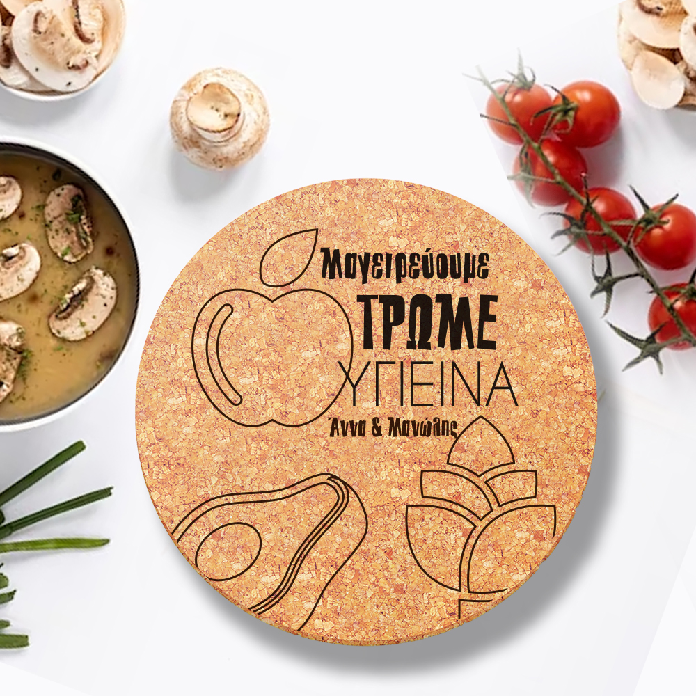 Ένα διαφορετικό & οικονομικό δώρο για την κουζίνας για την γυναίκα σας με αφορμή την 1η σας επέτειο, γάμου ή σχέσης, Βάση για ζεστά σκεύη κουζίνας, με Μήνυμα, Όνομα 3 τμχ. Προσωποποιημένο σετ 3 τεμαχίων από Φελλό Βάση για ζεστά σκεύη κουζίνας, με Μήνυμα, Όνομα, μπορείτε να γράψετε αυτό που θέλετε ανεξάρτητα από την δική μας πρόταση.