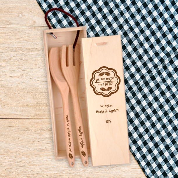 Κάντε ένα διαφορετικό δώρο στην Γιαγιά με αφορμή την ονομαστική της γιορτή. Σετ Προσωποποιημένο Με Ονόματα για κουζίνα Πιρούνα, Κουτάλα σε Ξύλινο Κουτί Δώρο στην αγαπημενη σας φίλη που ανοίγει το νέο της Σπίτι. Ένα διαφορετικό Προσωποποιημένο Δώρο Με Ονόματα για κουζίνα Πιρούνα, Κουτάλα σε Ξύλινο Κουτί, με μήνυμα και Όνομα για την ονομαστική Γιορτή της Μαμάς.
