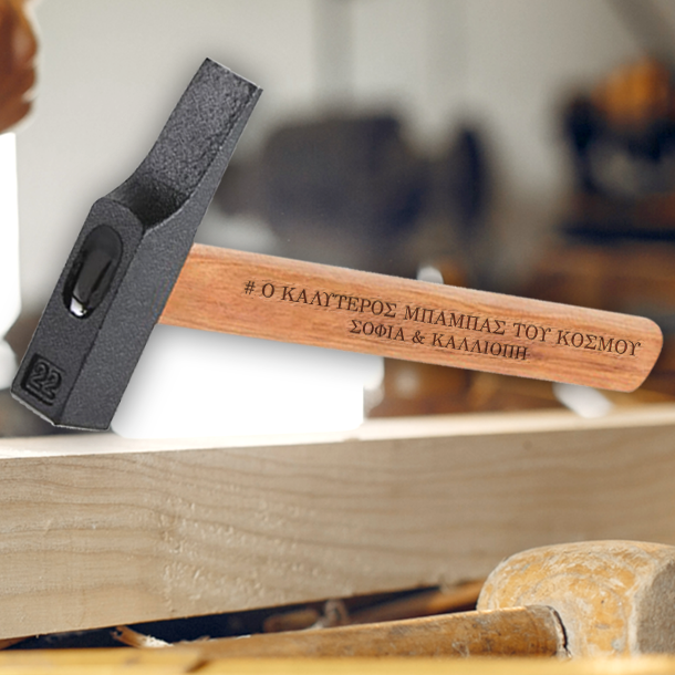 Το Δώρο γενεθλιων Σφυρί με ξύλινη λαβή χαραγμένο με laser, είναι πραγματικά ένα ξεχωριστό και πρωτότυπο δώρο για τα γενέθλια, του μπαμπά, του κουμπάρου, κουμπάρος, αδελφό, ξάδελφο ή έχει την ονομαστική του γιορτή που θα δημιουργεί κάθε στιγμή μοναδικές αναμνήσεις!