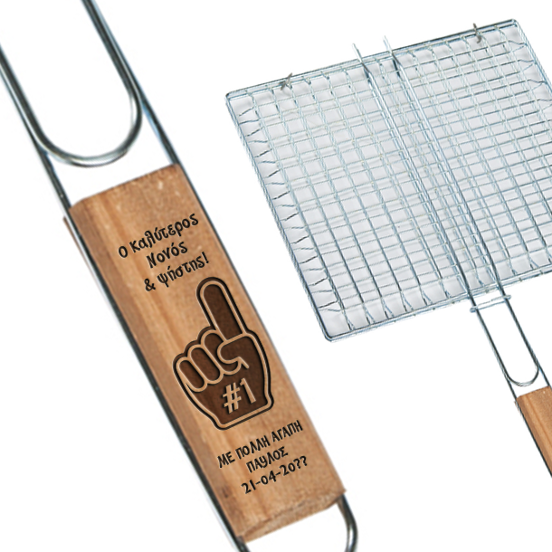 Με ξύλινη λαβή, Με Ονόματα, Μήνυμα Σχάρα Μπάρμπεκιου Νο 1, για Άνδρες, και Δικό σας Μήνυμα, δώρο για την γιορτή του πατερα, για να πείτε χρόνια πολλά στον αγαπημένο σας μπαμπά που γιορτάζει.