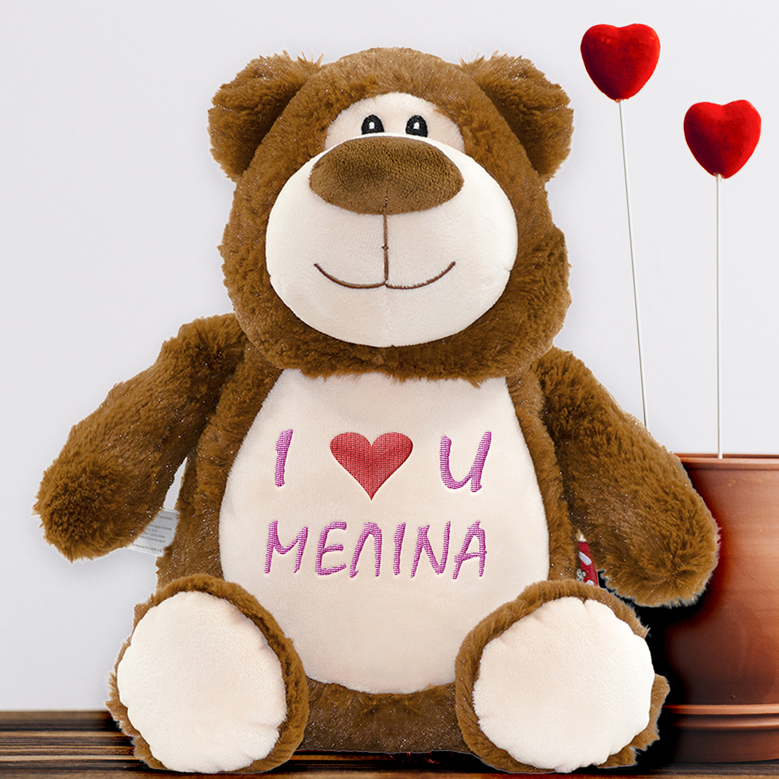 Ένα Προσωποποιημένο Δώρο που θα στολίζει το δωματιο της φίλης σας για πολλά χρόνια, Αρκουδάκι με Κεντημένο Μήνυμα & Όνομα, για ζευγάρι. Δημιουγείστε μοναδικές στιγμές στη σχέση σας, προσφέροντας στον άνδρα σας ή τη γυναίκα σας με αφορμή τα γενέθλια ή την γιορτή τους ένα προσωποποιημένο δώρο. Αρκουδάκι με Κεντημένο Μήνυμα & Όνομα, για ζευγάρι για Άνδρες & Γυναίκες για την επόμενη Επέτειο σας που είναι σε λίγες ημέρες. Ανακαλύψτε ένα προσωποποιημένο δώρο για την 1η - 2η - 3η - 5η - 10η - 15η επετείο σας που θα ξεχωρίσει από όλα όσα έχετε κάνει μέχρι σήμερα στο σύντροφό σας.