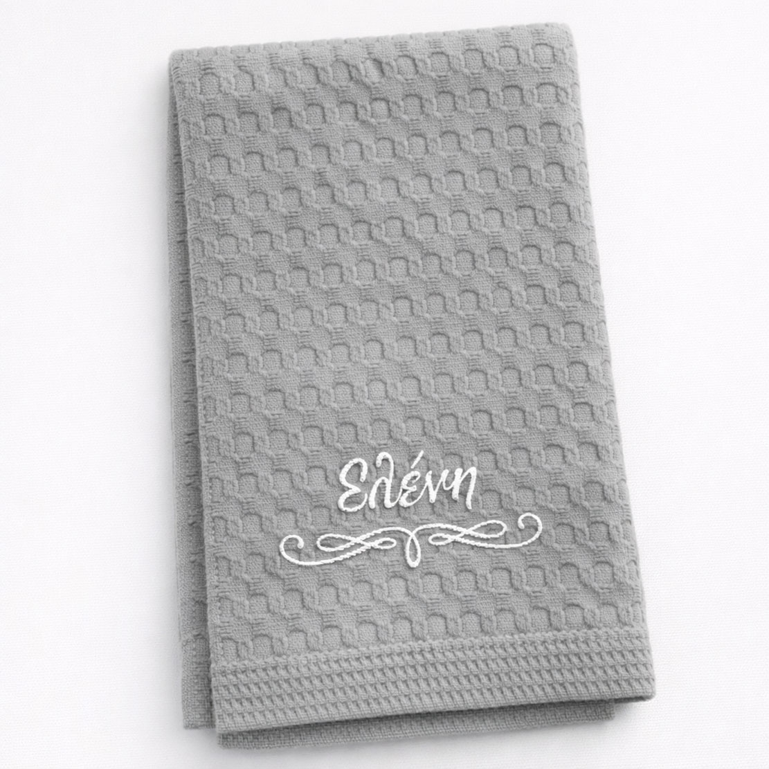 100 % Βαμβακερές απορροφητικές πετσέτες κουζίνας, ποτηρόπανα που μπορείτε να τις προσωποποιήσετε με τα αρχικά που θέλετε και να γίνουν το ξεχωριστό δώρο γενεθλίων στους κουμπάρους ή τους φίλους σας.