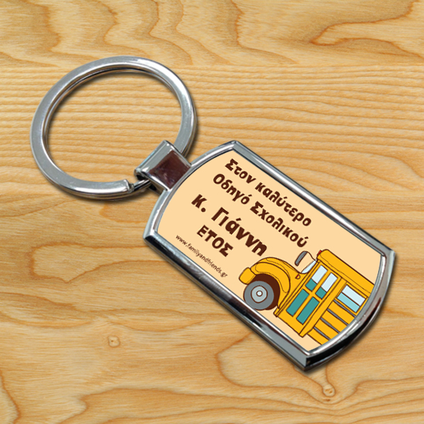 Ένα μοναδικό αναμνηστικό δώρο για την οδηγό ή τον οδηγό του σχολικού λεωφορείου παιδιού σας. Δώρο Μπρελόκ Μεταλλικό Προσωποποιημένο με Όνομα, για Οδηγό Σχολικού με αφορμή το τέλος της σχολικής χρονιάς ή κάθε άλλη αφορμή.