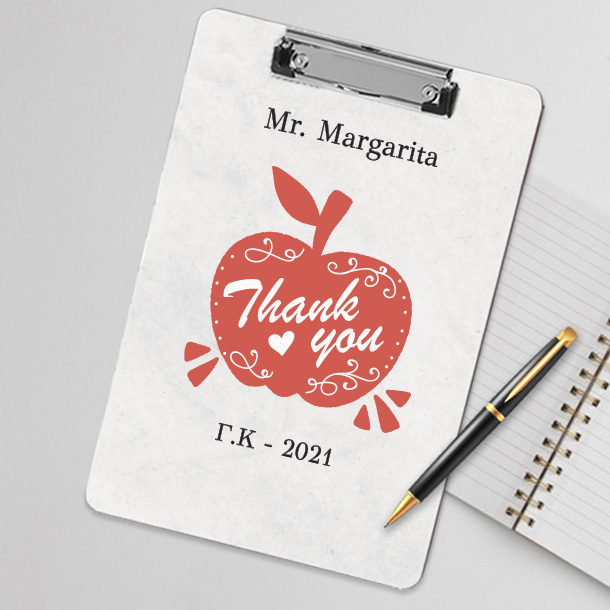 Το Προσωποποιημένο δώρο, Βάση Σημειώσεων, Clipboard, με Ονόματα, Μήνυμα, για Δασκάλα, Δάσκαλο, για Δάσκαλες, δασκαλους και ημερομηνία, είναι το δώρο που θα την ενθουσιάσει, και θα το κρατήσει σαν αναμνηστικό της σχολικής χρονιάς για πάντα.
