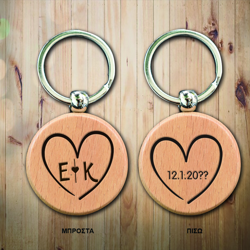 Έχετε επέτειο? εκφράστε την αγάπη σας με ένα ξεχωριστό τρόπο και με ένα μοναδικό και προσωπικό δώρο που θα εντυπωσιάσει και θα θυμίζει για πάντα αυτή την μοναδική στιγμή. Μπρελόκ ξύλινο διπλής όψης με Χάραξη, Αρχικά, Ημ/νία Δώρο για Ερωτευμένους που ξεχωρίζει, για την γιορτή του Αγίου Βαλεντίνου, την κάθε επέτειο ερωτευμένου ζευγαριού.
